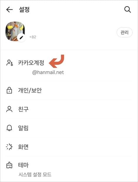 카카오계정을 터치합니다.