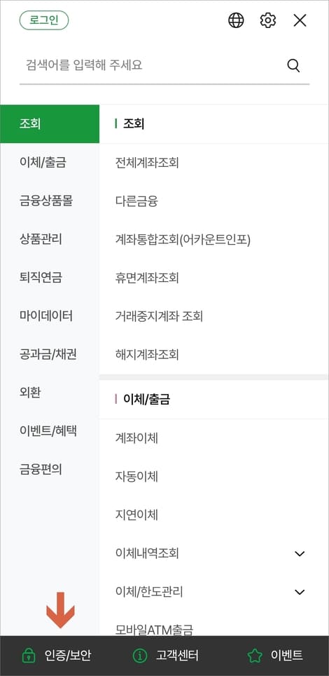이용 가능한 서비스로는 로그인, 이체 등 인증이 필요한 서비스로 보시면 됩니다.