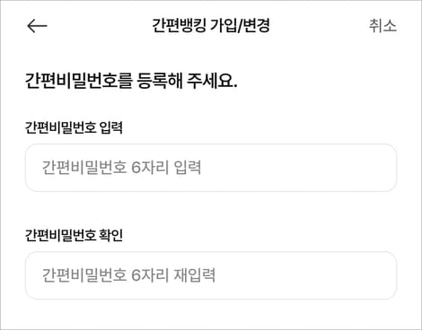 사용할 간편 비밀번호를 설정 등록합니다.
