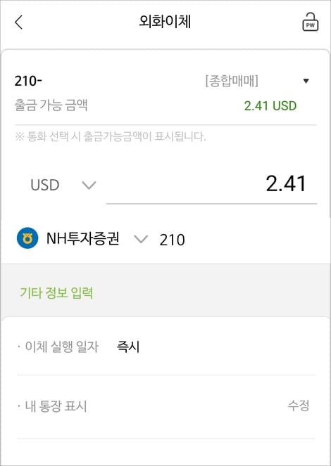 NH투자증권 나무증권 달러 외화 예수금 이체 출금 방법