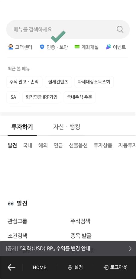 나무증권 앱을 실행하고 화면 맨 하단에 줄 3개 아이콘(≡)을 눌러주고 화면이 이동하면 상단에 인증 보안에 들어갑니다.