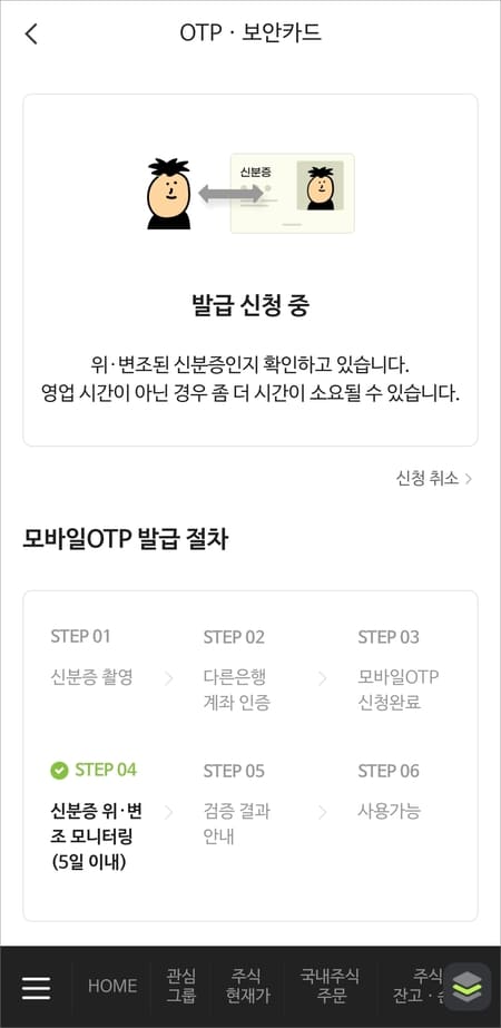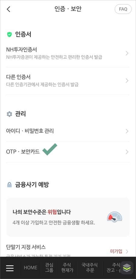 NH투자증권 나무증권 모바일OTP 발급/재발급 방법