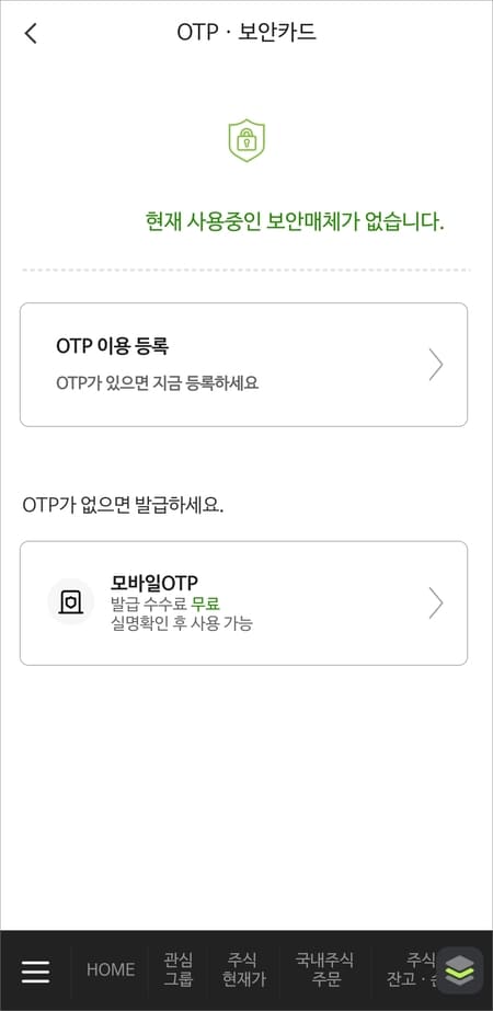 나무증권에서는 실물 OTP 사용등록 외에도 모바일OTP를 제공하고 있습니다.