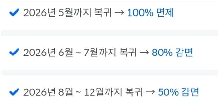 이 기한을 넘기면 혜택 비율이 100%가 아니라 80%, 50% 식으로 줄어드는 구간이 생긴다.
