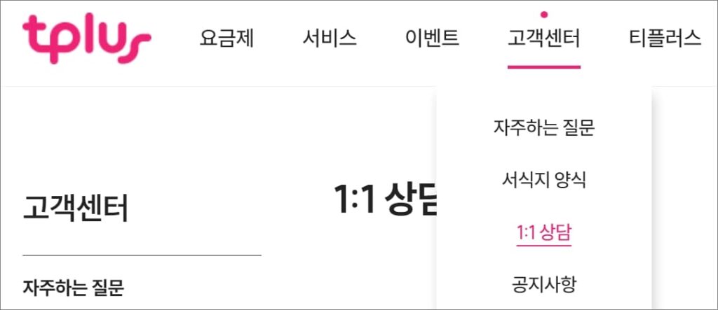 티플러스 고객센터 1:1 상담글 접수 방법